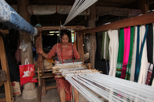 云南傣锦历史悠久,风格古朴,以其织工精巧、图案别致、色调鲜艳、坚牢耐用和富有民族特色而著称。它主要流传和盛行于云南省南部的西双版纳傣族自治州,西南部的德宏傣族景颇族自治州、耿马傣族佤族自治县、景谷傣族彝族自治县,以及孟连傣族拉祜族佤族自治县等傣族较聚居的区域。云南傣锦是一种以丝线、毛线、棉线、麻线、晴纶线、金丝线等材料为原料,采用傣族传统的木架织机手工操作,经提花、织造等工艺形式制作成的长条形织锦物,是云南的傣族人民从事宗教活动和美化生活必不可少的物品。傣锦长短不一,幅宽一般为20-60厘米不等。因其花纹绚丽多彩、形象生动、变化多端 、呈立体形,在云南少数民族织锦中独树一帜,享有很高的声誉。传统的云南傣锦按构成形式和材料主要有两种即西双版纳傣锦和德宏傣锦。西双版纳傣锦以白色为底,用红色和黑色纬线织成花纹,傣锦线条宽窄有致,形体夸张简练,图案较为规律化,具有粗犷的质朴感和浓厚的装饰性;而德宏傣锦则色调较为浓重,常用黑、红、翠绿、黄、蓝等浓艳色彩的丝线和棉线掺用金丝锦线织制,图案以菱形、方形、六角形及回形纹等几何形为主,织锦鲜艳夺目,结构严谨,纹饰古雅,尤显华丽。