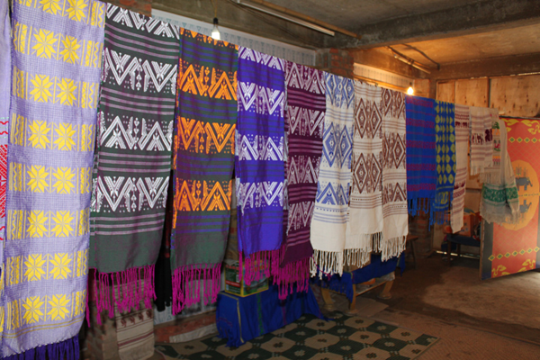 傣锦,即傣族的织锦,是流传在傣族群众中的一种民间工艺品,具有浓郁的地方特色和少数民族特色。傣锦织工精巧,图案别致,色彩艳丽,坚牢耐用。图案有各种珍禽异兽。奇花异卉和几何图案等等。每一种图案的色彩、纹样都有特定的含义,如红绿颜色是为了纪念祖先,孔雀图案象征吉祥,大象图案象征五谷丰登等。这些寓意深远五彩斑澜的图案,充分显示了傣族人民的智慧和对美好生活的追求和向往。据有关史学家考证,傣锦在汉代史籍中就有记载,到唐、宋时期已基本形成一定规模。南诏时期,地方官员把傣锦作为上贡朝廷的礼品,被王公贵族视为珍品。今天,傣锦工艺在继承传统的基础上得到了发展和提高。除了制作统裙、挎包、床单、被面窗帘、手巾外,还设计制作出了傣锦屏风、沙发垫等新品种,以其鲜明的色调、瑰丽的图案,受到国内外人士的喜爱。