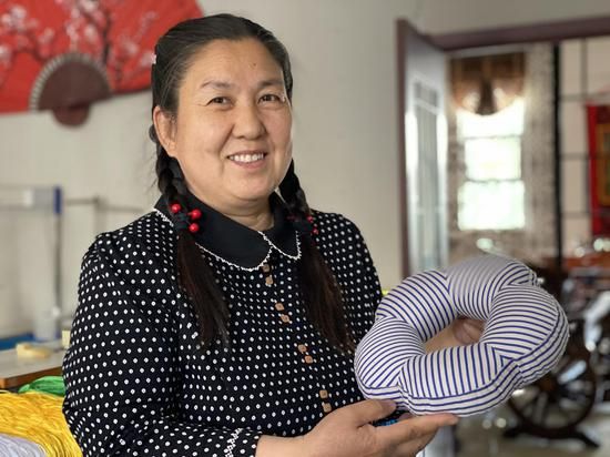 “耳枕中有孔,且孔孔相通相连,裁剪误差精确到2毫米,非遗技艺制作一个枕套要1到2天时间。”牟春玲说,蒙古耳枕四面通风,内芯是野生的荞麦壳,能够疏通血管、改善睡眠、按摩颈椎,与中医上“凉头暖脚”之说吻合。