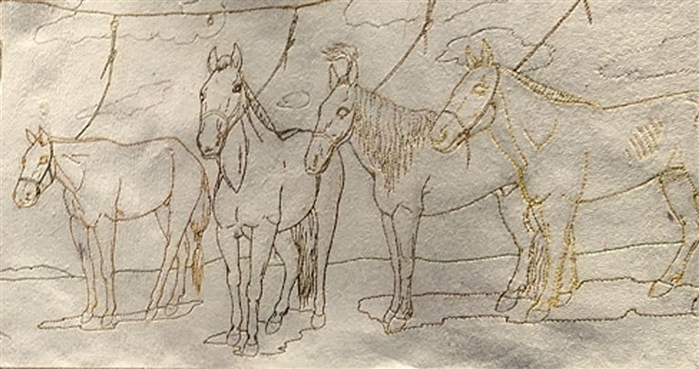 毛毡是天然的画布,毡绣技术随之应运而生。毡绣在蒙古语中称为“艾斯垓希日穆勒”,也称为绣花毡、刺绣毛毡、密缝花毡。随着时间的推移,毡绣技艺日渐完善。