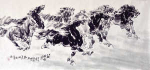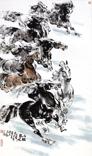 他广泛临摹前人的画马作品,对唐代韩干、宋代李公麟、元代任仁发、金代扬微、清代任伯年,当代徐悲鸿、刘勃舒等大师的画作都有深入的研究,经多年的勤奋努力,特木其勒的马已形成了他独特的艺术风格。