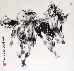 版画《牧民之家》《万马奔腾》,国画《双骏图》《雄风图》等作品,被加拿大、日本、美国、俄罗斯等国机构或多个人收藏。