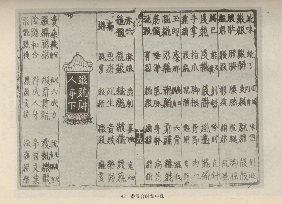 西夏文-汉文双解词语集。骨勒茂才著于西夏乾祐二十一年(1190年)。木刻本,蝴蝶装,页面长23厘米,宽15.5厘米,计37页。前有西夏文和汉文序,皆一页两面。正文每页两面,每面3栏,每栏内列3至6个词语,每个词语皆竖写4行字。中间两行字稍大,右为西夏词或词组,左为汉文释义;旁边两行字稍小,右为西夏字的汉字注音,左为汉字的西夏文注音。全书以天、地、人分类,收入西夏语常见词语。是研究西夏社会和语言文字的珍贵资料,对解读西夏文有重要作用。1909年出土于我国黑水城遗址(今属内蒙古自治区额济纳旗)。现藏前苏联科学院(现俄罗斯科学院)东方学研究所列宁格勒分所。前苏联伊凤阁于1919年首次介绍此书,后罗振玉、罗福成父子和王静如陆续刊布影印本或抄本。国内外许多学者用以研究西夏文字、语言和社会生活。日本桥本万太郎发表《掌中珠的夏汉对音研究之方法》,西田龙雄于1964年为书中西夏文拟音。1983年吴峰云发表《番汉合时掌中珠较补》,对抄印本多补正。1983年美国陆宽田刊布影印件。