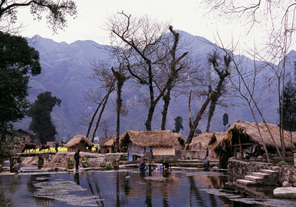 贵州省江口县太平乡云舍土家民俗文化村坐落在巍巍梵净山下,幽幽太平河畔。云舍山寨距江口县城7公里,距梵净山南山门23公里,全村总面积4平方公里,439户1717人中,98%的村民都是杨氏后裔,是江口乡村第一大寨.云舍土家族仍然保留着自身民族的风情习俗,因而被称为“中国土家第一村”。