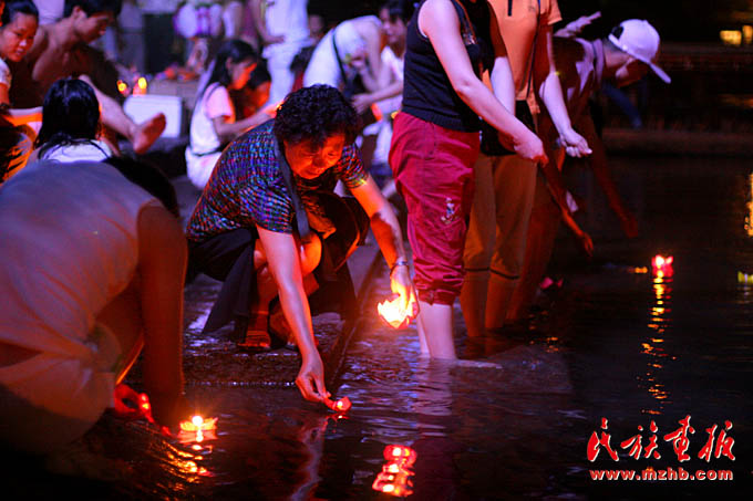 傍晚,寄托着念想的河灯摇曳在江水柔波里,前来放灯的游客只愿现世安稳岁月静好