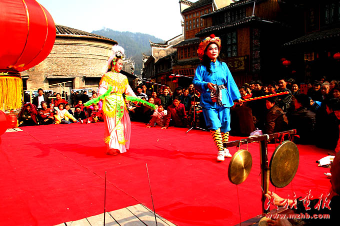 凤凰阳戏具有当地的民族风格和特点,是湘西影响力很大的地方剧种,其音乐形式丰富多样,技巧通俗简单,表演带有浓郁的生活气息,受到当地百姓和游客的喜爱