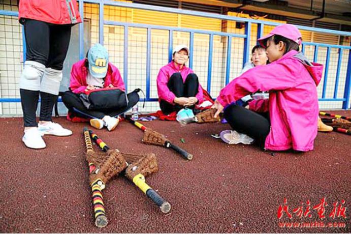 图为第八届全国少数民族传统体育运动会女子100米高脚竞速