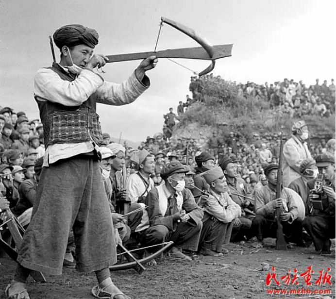 射弩在傈僳族和拉祜族中普及程度比较高,擅长射弩的男人被称为“神箭手”。(1955年)