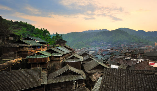 苗族人们崇拜杉树,在侗族村民心中杉树占有非比寻常的地位。他们认为,杉树被砍伐后还能发出若干嫩芽,继续生长发育,象征着生生不息。鼓楼以杉木建成,造型酷似古杉;花桥同样用杉木架设,所不同的是前者立着,后者躺着,形成“鼓楼矗立、花桥横卧”的格局。许多花桥的长廊上都建有凉亭,远远望去,一竖一横,就像立着和躺着的大杉树。