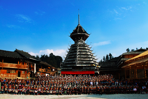 每年的农历八月十五中秋节,小黄都会举行赛歌会,有几十上百人唱歌的壮观场面,是观赏侗歌的最佳时机。侗族的大歌表演常在鼓楼举行。侗族的鼓楼、风雨桥和大歌是侗族原生文化最突出的标志,被称作“侗寨三宝”。鼓楼是侗族村寨的标志性建筑,形似巨大的杉树,村民称之为“遮荫树”。在没有鼓楼的年代,人们的许多活动是在古杉树下进行的。后来,为了满足社会和文化活动的需要,修建固定建筑物时便以杉树为原型。文献资料称:“侗人居溪峒中,春以巨木埋地作楼,高数丈,歌者夜则缘宿其上。”这就是最初的“鼓楼”。