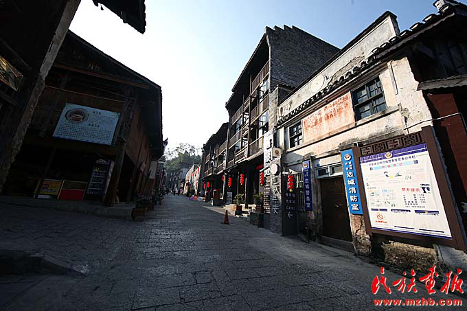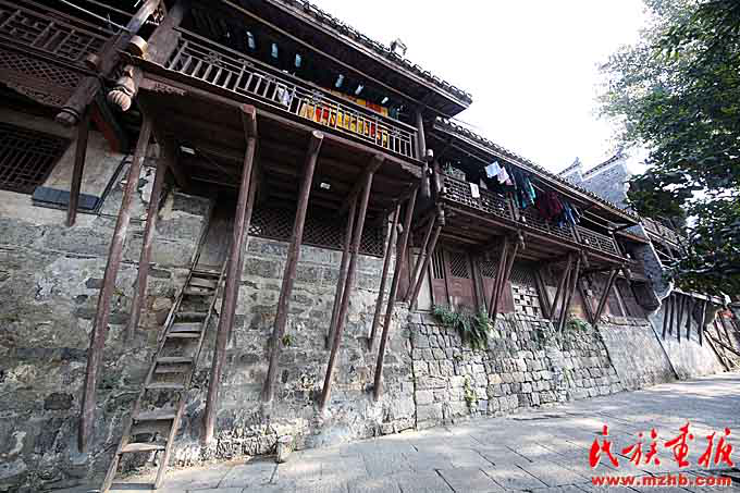 “拉拉渡”至今还是清水江两岸居民来往的主要交通工具之一下了“拉拉渡”就到了洪安镇,洪安有“渝东南门户”之称,在清水江旁的319国道大桥一侧建了一块刘邓大军胜利进军西南纪念碑,并在城内恢复了一些二野经过时的旧址。这里有两条老街,街上的房屋密集,古色古香。悠闲地走在洪安镇古老的石板街上,我有一种文学大师沈从文会迎面走来的感觉。