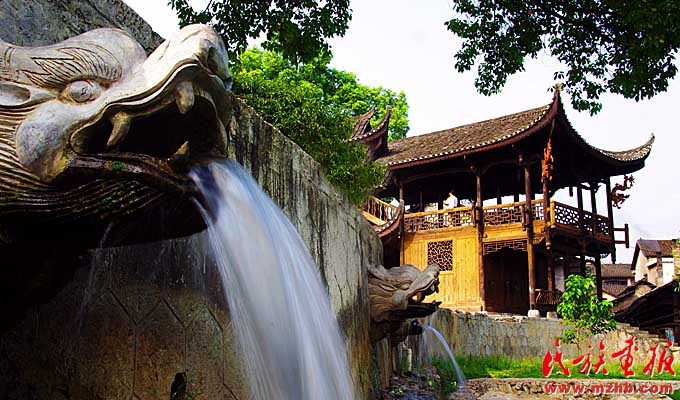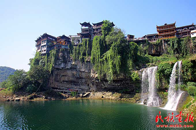 芙蓉镇位于湖南省湘西土家族苗族自治州永顺县的酉水北面,是酉水的重要码头,也是湘西四大名镇之一。图为芙蓉镇瀑布