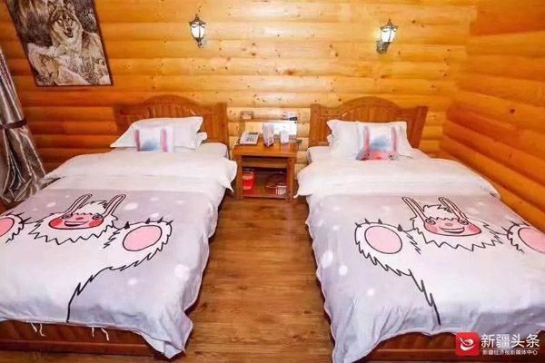 印有“雪怪阿乐”的床单。图 /蒋彩云