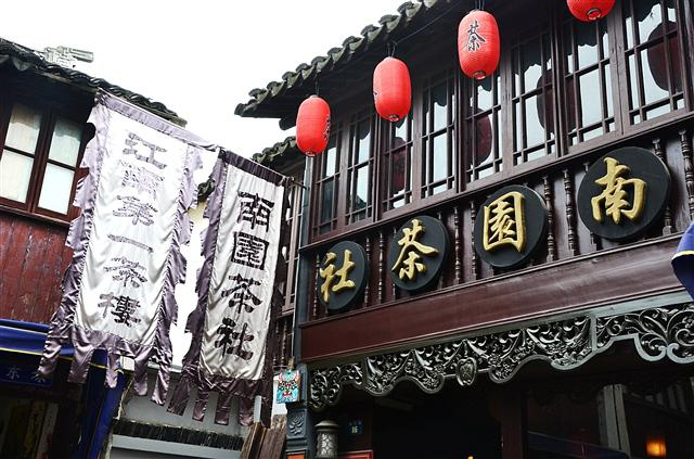 如今同里茶楼仍有数家,较有名气的应该算是南园茶楼了吧。茶楼卧于水上,临眺两侧市河,船只穿梭来往,驳岸随街曲折,水桥边边传来“鱼虾、莼菜、嫩藕”的叫卖声,岸边高大的榆树古槐,鹊鸦飞鸟憩于枝头,晨雾中的洞水影,村女戴着绣花包头,束镶边裙裾,发髻上扎着鲜艳的红头绳,于河埠浣衣洗涮。小桥流水人家风格尽显,同里古镇是游玩的好去处啊。