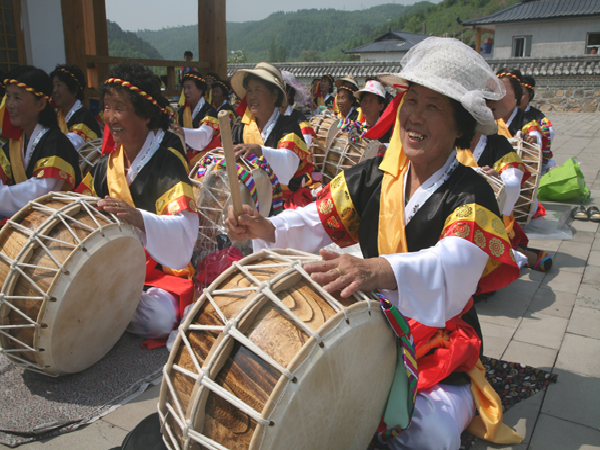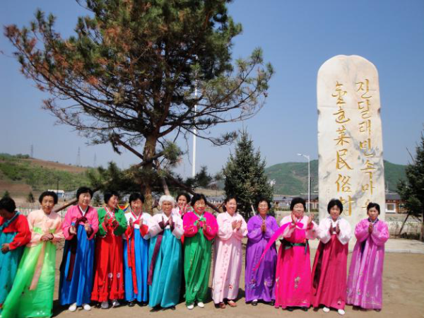 金达莱村——山花尽头的重生之村。每年春天,漫山遍野金达莱花盛开的时候,如霞似火,整个村落都沉浸于芳香与柔美之中,引得游客们纷纷带着各种摄影设备争相合影留念。空气中弥漫着各种香气,不仅有金达莱花的芬芳,还有令人垂涎欲滴的打糕、米肠、冷面、炒年糕、紫菜包饭、牛肉汤饭等具有民族特色美食的香味儿,游客们赞不绝口,流连忘返。万花丛中,朝鲜少女踮着脚尖,跳起长鼓舞,鼓声悠悠,舞姿翩翩,尽情地展现了金达莱村朝鲜人民对美好生活的向往与坚贞不屈的性格与品质,也通过优美的肢体语言讲述了一个百年老村新生的感人故事。