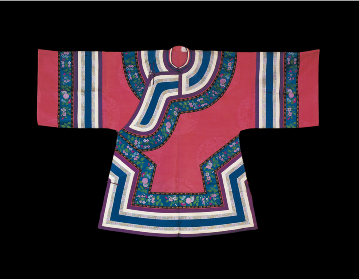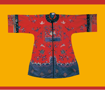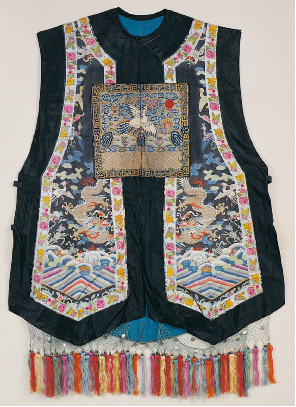 《史记·五帝本纪》载:“黄帝之前,未有衣裳屋宇。及黄帝造屋宇,制衣服,营殡葬,万民故免存亡之难。”在五千多年前的新石器时代仰韶文化时期,可能就产生了原始的农业和纺织业,开始用织成的麻布来做衣服。据传,黄帝之妻嫘祖发明了饲蚕和丝纺,衣冠服饰基本成制。殷商西周,冠服制度逐渐完善,春秋战国时期,衣冠款式走向多元,冠服制被纳入“礼治”范畴,从此汉族衣冠服制更加详备。中原地区还出现了胡服戎装,甚至相沿成风(图为汉族清代七品文官女朝褂,中央民族大学民族博物馆馆藏)。