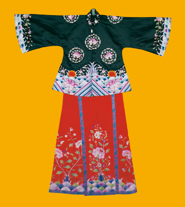 元代,作为民族大融合和中外文化大交流时期,长衣统称为袍,其样式南北方差异不大,但材料贵贱精粗,却差距悬殊。汉族男性发式变化不多,但北方的汉族女性发式较前简化。在元朝并没有完整的冠服制度。蒙古人入主中原后仍保持其生活习俗,但同时又受汉族的影响,服饰日趋华丽。在大宴活动中,天子百官要穿统一颜色的服装,称为“质孙服”,其形为袍袄状,与汉族深衣相近(图为汉族清代牡丹纹缎绣女装,中央民族大学民族博物馆馆藏)。