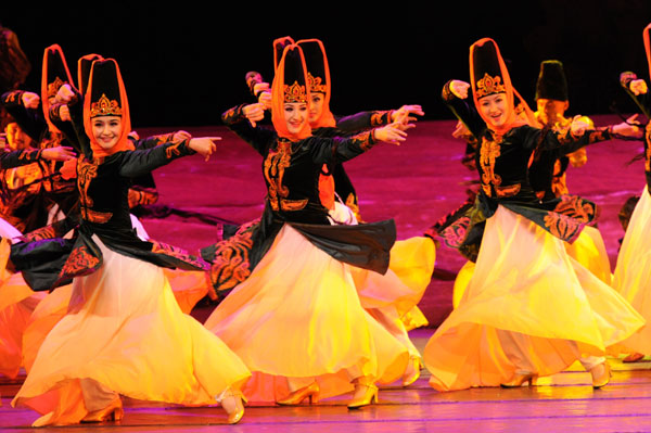中国新疆维吾尔自治区歌舞团成立于1949年,是中国独具特色,优秀的歌舞团体。简称新疆歌舞团。新疆歌舞团由维吾尔、汉、哈萨克、回、蒙古、柯尔克孜、乌兹别克、锡伯、满、俄罗斯等十余个民族的艺术家组成,汇集了新疆各民族文化艺术为一体,拥有一批杰出的舞蹈家、歌唱家和颇具实力编创人员,表演实力雄厚,演艺阵容整齐,是新疆最具代表性的优秀艺术表演团体,创作演出了维吾尔和其它少数民族的舞蹈、歌曲、乐曲、弹唱等节目,曾多次获世界性大奖。