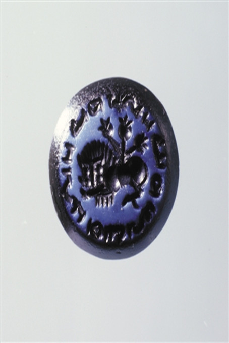 史诃耽夫妇合葬墓出土的蓝色圆形宝石印章
