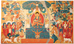 古格王国壁画 牦牛是高原艺术的主题之一。从古老的岩画、壁画,到唐卡、石刻、木刻、织品、绘画,人们通过大量作品表现了牦牛的勇猛与力量。 西藏的很多藏传佛教寺院乃至布达拉宫、罗布林卡、古格遗址等都有牦牛题材的壁画。这幅古格王国壁画非常生动地描绘了牦牛潜心聆听佛祖说法的场景。 (本文图片除署名外,均由首都博物馆提供)