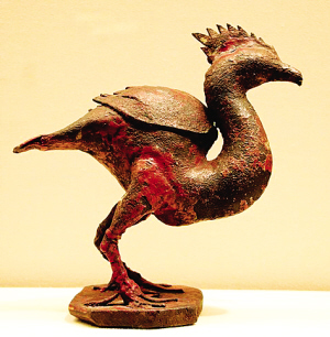 皮质鸡 早期藏族神话将牦牛与创世联系在一起,许多重大的历史事件中都有牦牛的身影。它被藏族人民视为护法神,逐渐融入高原的政治、宗教和文化的方方面面。 这件牦牛皮制作的鸡形摆件是一件祭祀用品。在苯教中,随着观念的转变,人们用皮质鸡祭祀替代以前的活体祭祀。