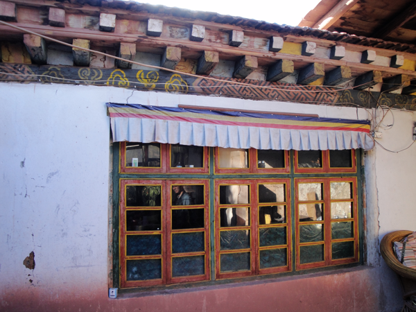 “庄廓”是甘青藏族农区最为普遍的民居。“庄廓”院墙高近两米,主要功能是挡风沙、保安全,院内除了居室外,还有畜棚、杂物室、厨房等,占地约一亩。庄廓内的房子一般为土木结构,三面建房,一面开大门。堂屋正中供佛堂,院内有煨桑炉和花坛,大门边立嘛呢旗杆。“庄廓”民居受当地汉族民居的影响很深。