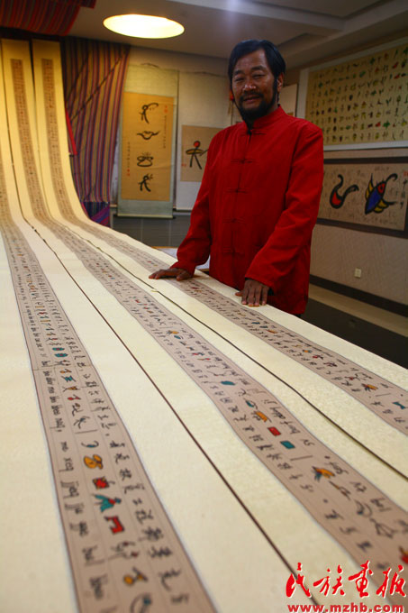 和文光和他的东巴象形文书法作品长卷《千禧天歌》