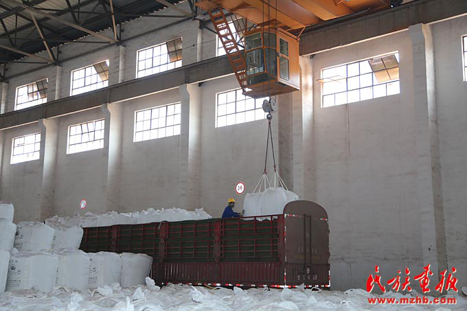 工人将氧化铝成品装车