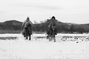 进山狩猎的准备活动从凌晨就开始进行了,绳、皮套和马腿上的裹布都要弄好,政府下发的猎枪也要擦得铮亮,黎明前,还要给马喂一桶温热的豆饼水。东方现出鱼肚白不久,一抹红霞染红了白桦林,猎人骑着马,驮着睡袋出发了。作为猎手,张林江出了村依然先往东走,那里是祖先指引的方向,还有山神白洽娜在等待。风,刮起树上和地上的白雪,兴安岭一片苍茫。