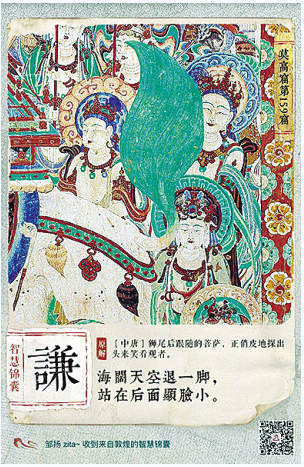 此次“数字供养人”活动以线上创意互动为传播方式,吸引大众参与。用户通过点击互动,可以观看“数字供养人”的创意视频,了解敦煌的“供养人”文化,并随机获得“智慧锦囊”。锦囊是以敦煌壁画故事内容,结合现代人熟悉的生活场景和喜闻乐见的语言形式,形成的一系列智慧妙语。通过这样的创意方式,用户不仅可以了解到敦煌壁画的历史和艺术之美,还可以受到敦煌文化智慧的启发,引发对现代生活的思考。