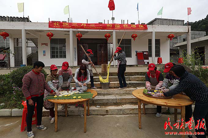 德保县壮族群众制作壮族特色美食欢度“三月三”(民族画报记者赵利 摄影)