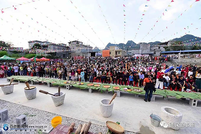 金秋十月,水稻开镰收割。2017年10月22日,德保县举办“龙写大糯”尝新民俗“那”(在德保壮语中泛指稻田)文化旅游活动,打糍粑等民俗活动吸引来大批游客及摄影爱好者(百色新闻网)
