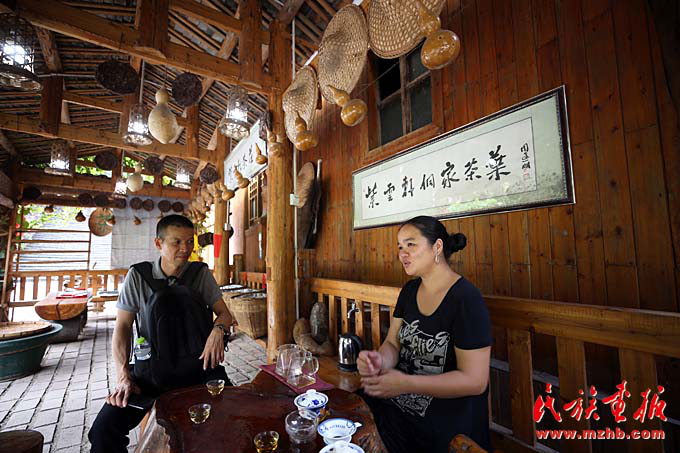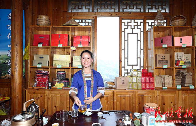 马安寨的吴丽娟在向客人介绍自家的茶叶