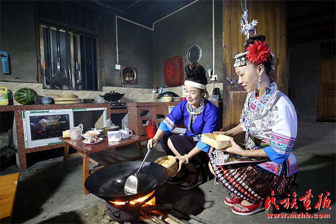 三江县林溪乡冠洞村冠小社区的侗族百家宴,可谓远近闻名。在寨子鼓楼旁的广场上,全村老少先是给游客表演侗族的歌舞和自己编排的展示民族生产生活的文艺节目,节目结束后,在广场上把桌子和凳子摆放好,各家把精心准备的饭菜和酒摆上桌。色香味美的佳肴吸引着众人,一时间广场成了欢乐的海洋,人们手里拿着碗筷,走桌串座。席间会有热情的村里人敬酒,高山流水的敬酒方式会给人留下深刻的印象。“侗族百家宴参与性强,印象深刻,我也是第一次体验,非常开心!”柳州客人潘忠义激动地告诉记者。
