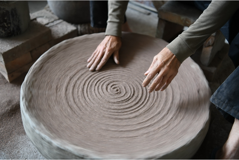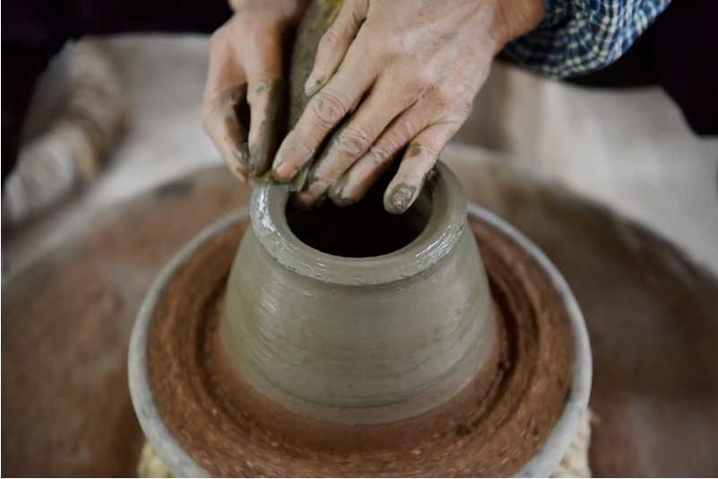 在罗城仫佬族自治县四把镇三堆屯的煤砂罐作坊里,吴昌术正在制作煤砂罐。
