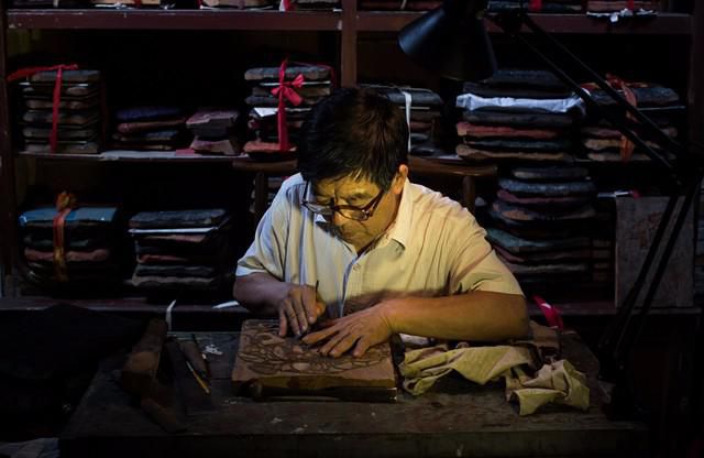 郭泰运教授徒弟如何选取雕版木材(摄影:王洋、孙海涛)