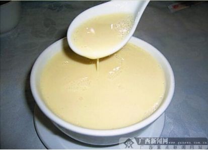 利用冰泉水制作的豆浆,风味独特。一啖豆浆入口,一股诱人的香甜迅速在舌尖和心底融化,许多人从此情不自禁地爱上了它。明代永乐年间,大明奇才解缙因事被明成祖贬到广西。来到梧州,对晶莹如脂、滋润嫰滑、清甜香醇的冰泉豆浆“一见钟情”,赞不绝口。现在梧州的冰泉豆浆馆,每天都客似云来。