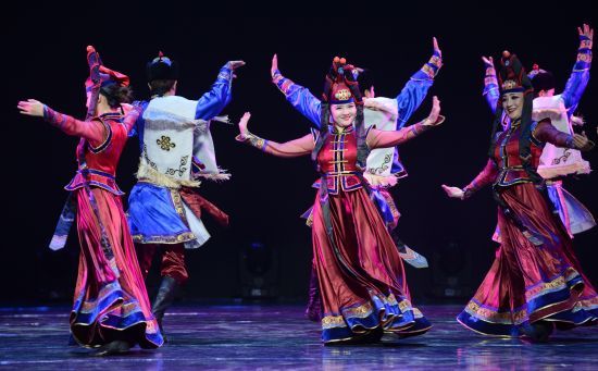 来自内蒙古自治区兴安盟的舞者表演《乌仁布斯贵》。