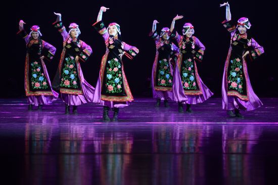 来自新疆维吾尔自治区的舞者表演《焦热哈热》(黑走马)。