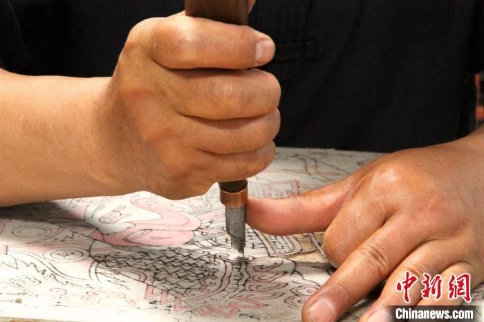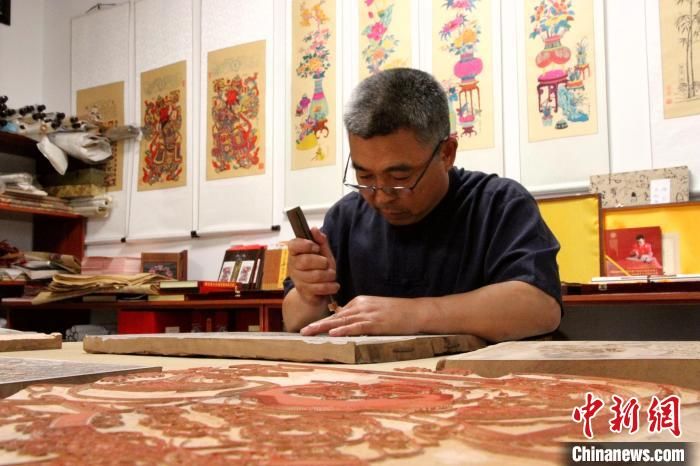 图为杨乃东在制作杨家埠木版年画。 孙宏瑗 摄