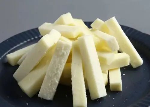 奶豆腐一般是指我们平常所说的奶酪,也叫乳饼,完全干透的奶豆腐又叫奶疙瘩。顾名思义它是用奶做成的食物,但它并不是豆腐,只是形状类似普通豆腐,因像豆腐而得名。味道有的微酸,有的微甜,乳香浓郁。一般常泡在奶茶中食用,更加筋道Q弹。奶豆腐可谓牛奶的精华,营养丰富、味道鲜美,蛋白质含量非常高。还可以做成拔丝奶豆腐,不用说当然也很好吃,想一想都要流口水了。