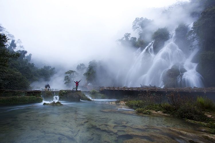拉雅瀑布:源自响水河上游山体洞泉,截流沿崖体陡岸悬空而下,落差30米,宽20余米,“拉雅”布依语译“美丽的女神”。