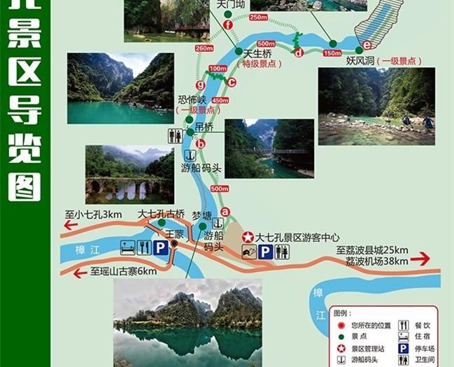 小七孔景区位于荔波县西南部,距县城约28公里,距麻尾火车站约36公里。是樟江风景名胜区的四大风景片区之一,地处贵州高原南缘地带,总面积约46.4平方公里。景区集林、洞、湖、石、水等多种景观于一体,玲珑秀丽。景区以精巧、秀美、古朴、幽静著称,移步换景、令人耳目常新。