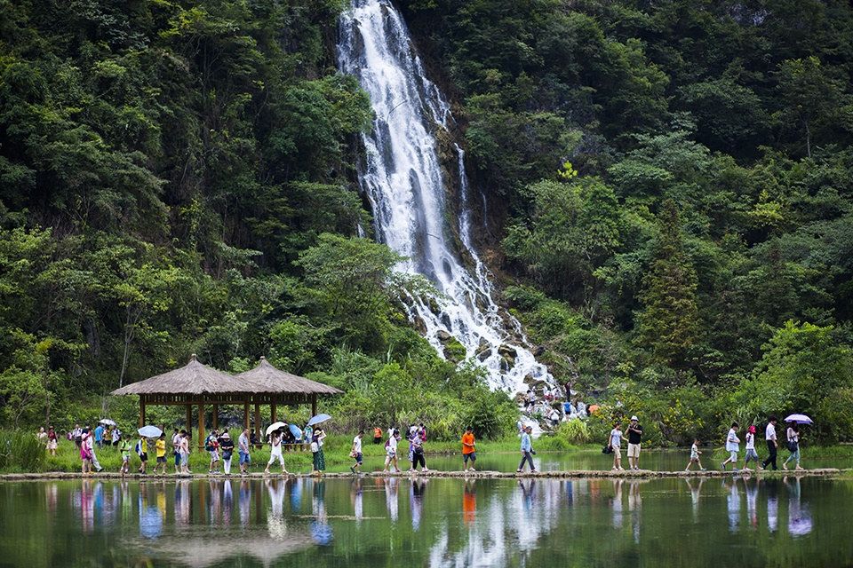 集洞、林、湖、瀑、石、水多种景观于一体,玲珑秀丽