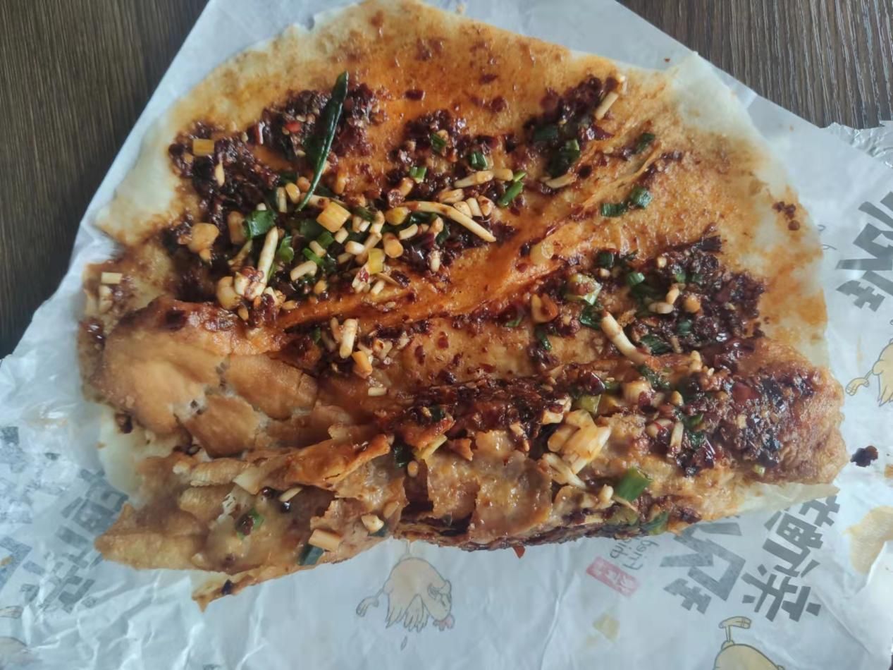 包饼油条,顾名思义,就是用饼把油条包起来。这个饼跟我们日常所熟知的各个地方的饼不一样,是用没有发酵过的面,仔细摊成的。这个饼非常薄,大概只有不到3mm,直径大概在25cm左右。