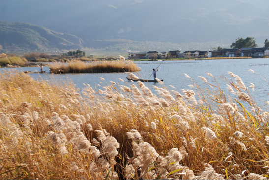 大自然的调色盘十分富有却不藏私,春夏的大理西湖鲜活清新,明亮的蓝和清脆的绿,心旷神怡,是小家碧玉的清秀和灵动,忍不住的想撑船靠近这些生机勃勃。风中有芦苇柔美不失筋骨的舞姿,水里有悠悠的荇草和广袤的蓝天白云,船上有思绪无影踪的人,秋冬来的时候,芦花倒影一片白,大理西湖先染了一层霜雾,晨间雾霭缭绕,稻黄澄澄,荷香阵阵,鸟鸣啾啾,出船的渔夫仿佛成了陷阱的接驳人,湖上的芦苇榨干最后一丝的绿,匆匆染上了油画里的金黄色,眼前的金色荷塘,依依柳影,就足够自己消受,往日的记忆,都在时光里苏醒,散发着别样的味道,远远看着像是织好的一件蓑衣,这一季的晚霞瑰丽得不可思议,寒冷时节的暖色教人格外珍惜,苍山白发,西湖绿波,青烟袅袅,一汪湖水缠绵在苍山的鬓边,西湖的冬天,依旧是成片成片的金黄色,成千上万的候鸟聚集,叽叽喳喳地议论着,享受冬日暖阳,一切都像从梦中刚刚醒来般美好。该好好感谢那个手滑的粗心神仙,成就了这片比镜子还剔透的大理西湖,一日不同景,四季不同色,世上最好的景色也不过是,山水之间的点点人间烟火,人在山水里,山水里有人。