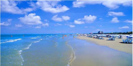 北海银滩一一1992年被列为国家级旅游度假区,为中国35个“王牌景点”之一,享有“天下第一滩”的美誉。她东西绵延24公里,以滩长平、沙细白、水温净、浪柔软、无鲨鱼、无污染的特点称奇于世。这里空气清新自然,负氧离子含量是内陆城市的50--100倍,年平均气温22.6摄氏度,是康复休养的好环境。