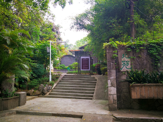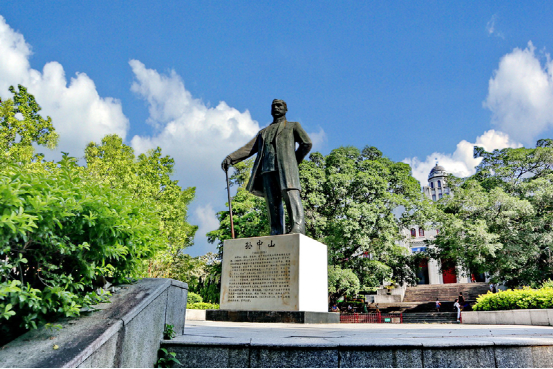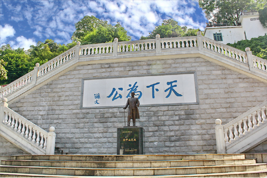 沿着中山路来到北山脚下,有一道造型美观的上山台阶,上面就是中山公园。台阶中央的石墙上雕刻有孙中山先生题写的“天下为公”大字。石墙前面有孙中山先生站立的塑像。沿阶梯向上,有简朴的牌坊,上书“博爱”大字。沿台阶上到大平台也有一尊孙中山的立像。早在1921年至1922年,孙中山曾三次到梧州从事革命活动,发表重要演说,召开军事会议,组织北伐工作。孙中山先生逝世后,梧州市人民为了纪念他的丰功伟绩,在李济深的倡议下,筹建梧州中山纪念堂。于1926年举行奠基仪式,1928年正式破土动工,1930年10月建成,比广州的中山纪念堂早一年建成,是中国最早的中山纪念堂。
