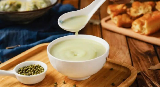 冰泉豆浆斐声遐迩、得天独厚的是“冰井泉香”的井水。“冰井泉香”自唐朝已出名,《梧州府志》记载:“梧州城东有井出冰泉,井水甘凉清冽。”冰泉豆浆以它“香、滑、浓”独具风味,驰名中外。冰泉豆浆以优质黄豆,利用冰井泉水精工制作,保持黄豆的原色,是一种内含植物蛋白质,营养极其丰富的饮品。冰泉豆浆凉冻后,面上凝成一层薄豆皮,滴在桌上成珠,聚而不散,谓之“滴珠豆浆”。这种豆浆醇浓、甘甜、香滑。港澳台同胞和外国友人都慕名而来以先饮为快。“不饮冰泉豆浆,不算到过梧州”之说已传遍中外。