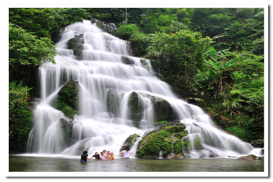 地势造就了九万山内溪流涧水纵横四野,飞瀑流泉随处可见的景观。张家弯一带有一个十几楼高的通天瀑布,十分壮观,而在距张家弯一带五六公里处一个叫猴哭崖的3级瀑布比通天瀑布更为壮观。这里水源呈星芒状放射全区域,并形成3条主要溪谷,汇集成贝江河、中州河、阳江河和东小江河4条河流,先后注入柳江,最后到达珠江出海。数不胜数的深潭,水底的砂砾、成群结队地从岩石下游出来的小鱼、水草清澈见底,一目了然。溪水汇聚于河谷,生成九万山许多壮观的瀑布。
